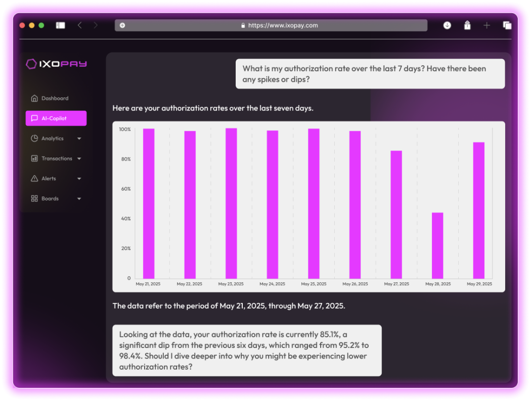 Payments are the heartbeat of your business, but let's be real, they can also be a headache. Declines tanking your conversions, refunds creeping up, fees eating into your margins... it's frustrating, and it's a lot to untangle. At IXOPAY, we are always looking at ways to bring intelligence that can help the life of professionals working with payments, and we've built something to cut through the chaos: our AI Co-Pilot. Think of it as your go-to AI payment expert, here to turn confusion into clarity with answers you can actually use.